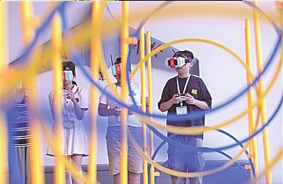 学生在浙江省湖州市德清县地理信息科技馆体验操控无人机。2023年5月,教育部等十八部门联合印发了《关于加强新时代中小学科学教育工作的意见》,系统部署在教育“双减”中做好科学教育加法,支撑服务一体化推进教育、科技、人才高质量发展,加强新时代中小学科学教育工作正逢其时。
