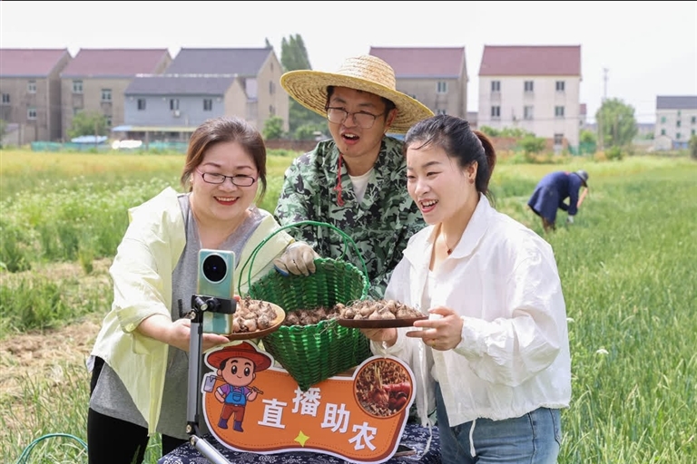 5月6日,新安镇成校直播班的学员在下舍村藏红花种植基地内直播带货,为当地农特产品打开销路。近年来,“直播+电商”搭建了销售新渠道,凭借“小屏幕”打开“大市场”,有效带动当地特色农业产业发展,助推当地农特产品出村,助力乡村振兴。