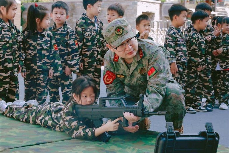 国庆前夕,武康街道联合武康幼儿园开展国防启蒙教育活动。百余名幼儿化身“小小特种兵”,通过沉浸式体验感受军人风采,在趣味互动中传承红色基因,厚植爱国情怀。
