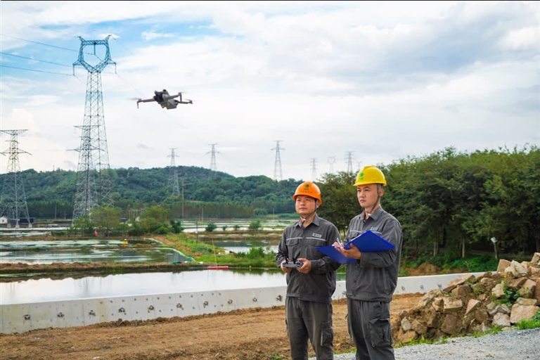 日前,在乾元镇联合村,输配电运检中心工作人员采用“空中监测+地面联动”的模式开展特巡,对杆塔绝缘子、金具、塔基等关键部位进行无死角检查,确保隐患排查到位。