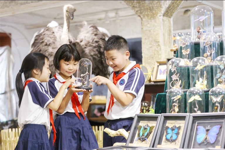 近日,莫干山镇中心学校组织学生走进莫干山洞标本馆,让孩子们在观察与互动中感受生命奥秘,了解生物多样性,激发他们探索自然科学的兴趣。
