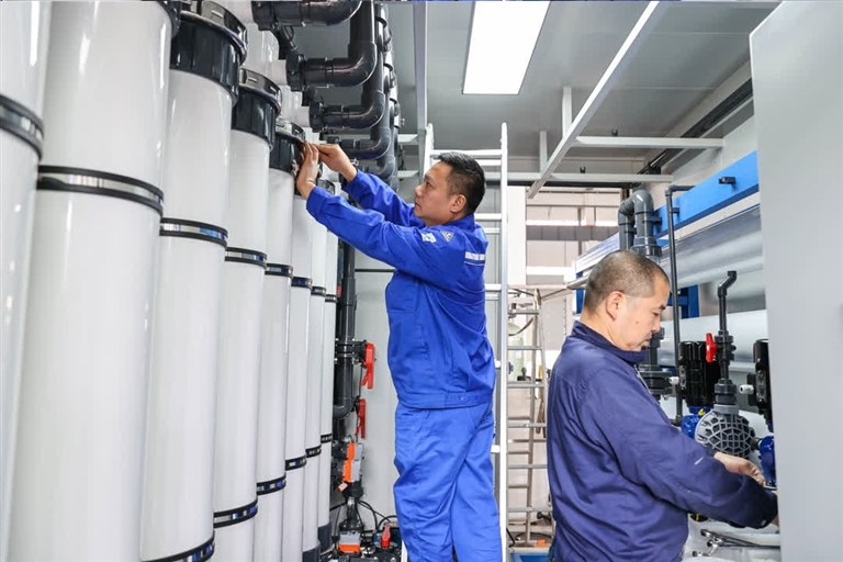 日前,记者在位于雷甸镇(临杭产业新区)的浙江大者科技有限公司车间里看到,公司技术人员正加紧安装出口俄罗斯、沙特的集成式水处理设备。浙江大者科技有限公司专业从事气体、液体分离及纯净设备制造等。