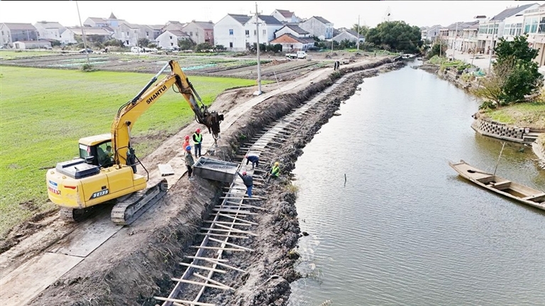在勇兴村彭介埭港水系沟通段,生态护岸底板浇筑作业也在有序推进。据施工方透露,接下来将陆续完成南坝闸站、汰渔埭东等5座闸站的围堰填筑及桩基施工,并同步完成1000米水系沟通任务,进一步打通区域水网“脉络”。