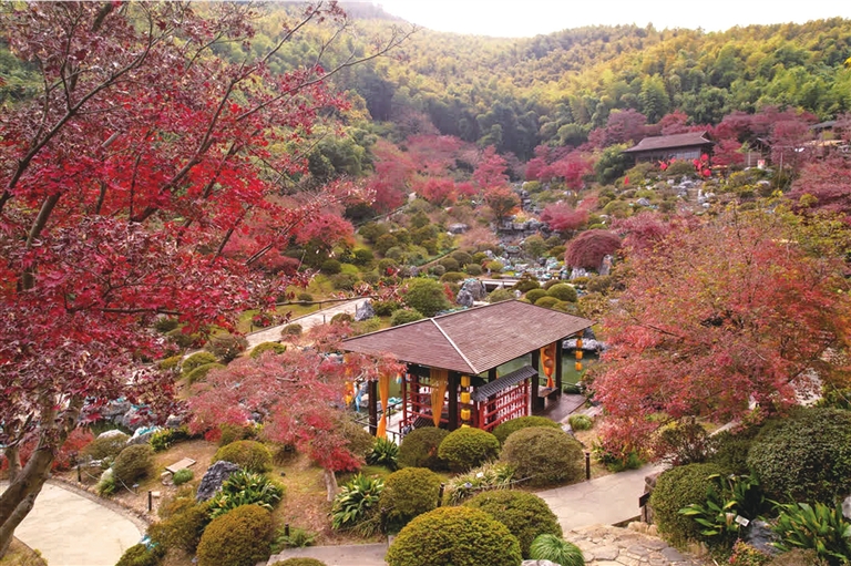 12月2日,下渚湖·奇幻谷杜鹃谷的红枫迎来一年一度的最佳观赏期,为初冬增添了一抹绚丽的色彩。