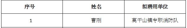 根据《2025年德清县公开招聘乡镇专职消防员公告》,经报名、资格审查、体检、体技能测试、面试,现将莫干专职消防队拟聘用人员公示如下: