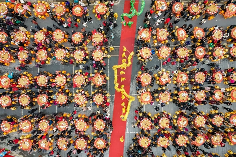 据了解,年猪饭是德清西部山区一项独具特色的民俗活动,已有一千多年历史,既是生活富足的象征,也寄托着五谷丰登的美好愿景。近年来,后坞村民宿产业蓬勃发展,现有民宿150余家,年猪饭活动也成为民宿业主回馈村民、感恩社会的重要方式。今年的活动已经是第六届,由100余家民宿及企业、个人共同出资承办,规模达到了136桌,吸引了村民、游客等1500余人参加。