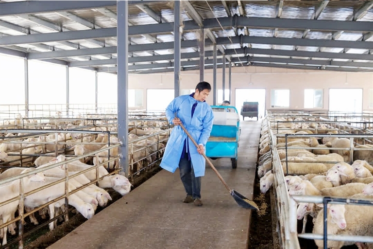 近日,新市镇白彪村的龙顺数字牧场,工人正在喂养湖羊。该牧场通过“人机协同”模式实现了近万只湖羊的智能化养殖。目前,牧场正规划从智能养殖向休闲观光拓展,探索集科研、生产、体验于一体的三产融合发展新路径,提升牧场综合效益。
