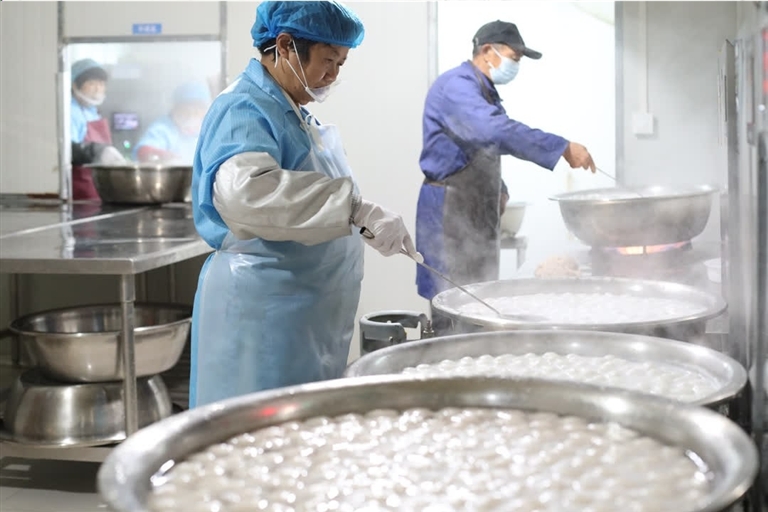 “客户都是找上门来的。”施建根介绍着,手上的节奏却丝毫未缓。身后,一盆盆乳白色的鱼浆莹润如玉,那是用草鱼与花鲢调出的新配方,比早年使用的白鲢品质更佳。自16岁当学徒算起,施建根与这门手艺已相伴近四十载。如今,他的鱼圆已成为当地不少家庭宴席上的必备菜品。“本地人办酒席、吃年夜饭,都喜欢用这个,寓意团团圆圆,也图个清爽干净。”
