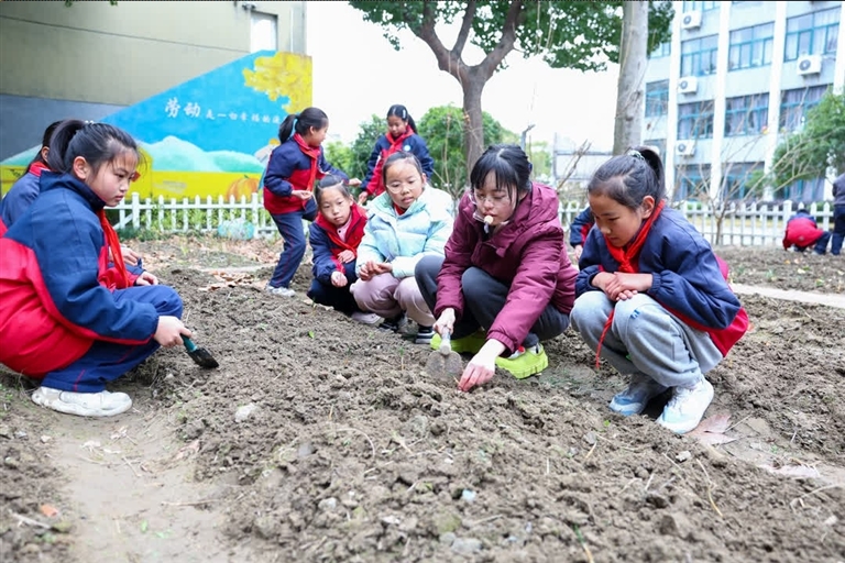 近日,新安镇下舍中心学校开展劳动实践活动,将课堂搬到了“校园农场”里,学生在科学老师指导下种植藏红花。该学校立足本地产业特色,创新打造“学校+基地”模式,助力学生全面成长。