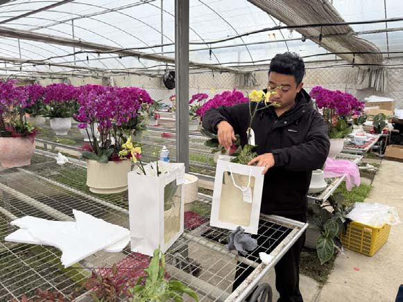 3月3日上午,位于莫干山镇的德清加州农旅发展有限公司温室大棚内春意盎然,蝴蝶兰、红掌、宝莲灯等各类花卉竞相绽放,色彩斑斓。工人们正加紧对鲜花进行组盆、装饰,一盆盆造型别致、包装精美的“节日礼盒”整装待发。