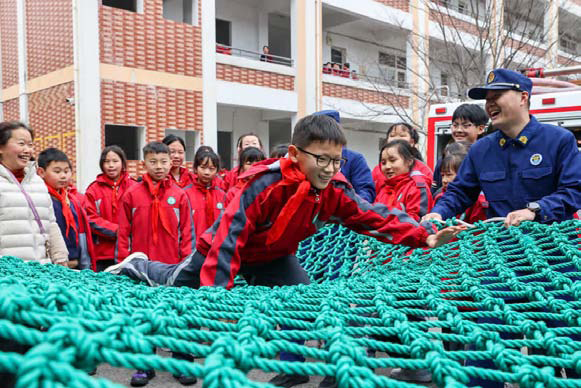 3月4日,雷甸镇中心小学大丰校区,镇专职消防队的消防员向学生开展“开学第一课”安全教育主题活动,通过学习消防安全知识、体验逃生技能,提升学生安全意识和应急避险能力。