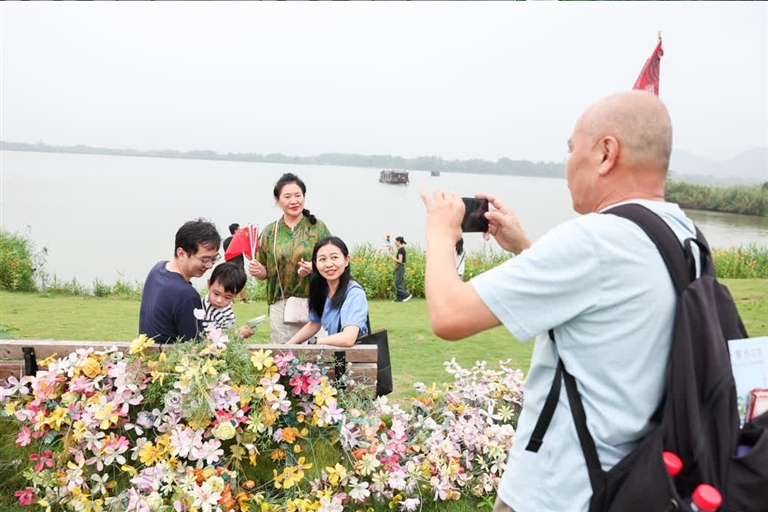 秋日清风裹挟着欢声笑语,拂过倒映着蓝天与人群的湖面。游客手中挥舞的红旗,在水光山色间交织出一幅热烈而欢腾的假日画卷。下渚湖·湿地公园游客中心副经理周冬平介绍,假期里以散客为主,日均客流约6000人次,10月3日至6日是高峰。