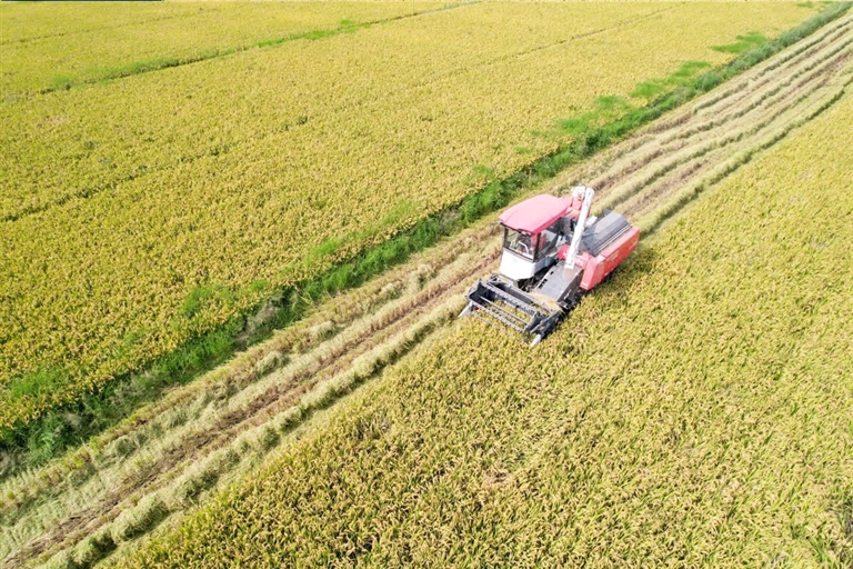 9万亩晚稻收割