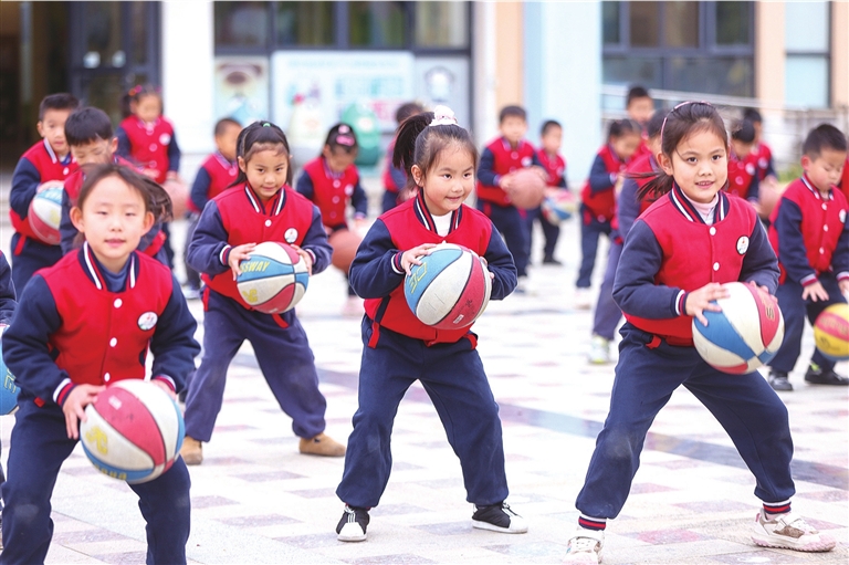 近日,德清县三合幼儿园的孩子们在课间锻炼。近年来,该幼儿园不断创新丰富体育活动,通过开展形式活泼、趣味盎然的运动项目,引导孩子在运动中感受快乐,增强体质。