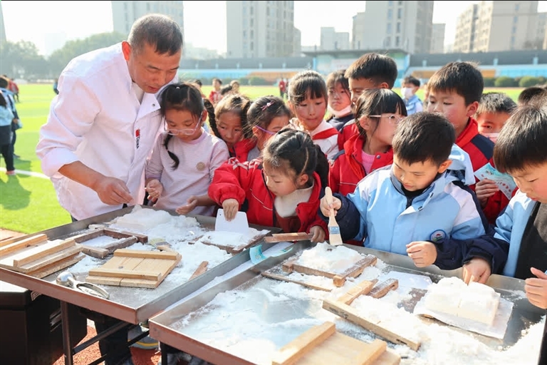 近日,由浙江泰隆慈善基金会主办的“非遗泰美好丝韵润童心”文化浸润活动在新市镇仙潭小学举行。来自县内外十余位非遗传承人携匠心之作走进校园,将传统技艺的活态魅力融入校园生活,为师生带来了一场沉浸式的传统文化体验。