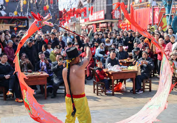 2月18日,正月初二,游客在新市古镇慢游,感受别样江南小镇年味,乐享春节假期美好时光(上右图)。