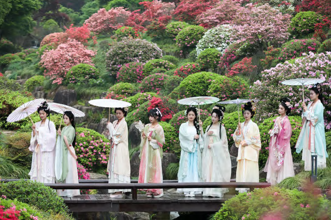 4月11日,2026奇幻谷花朝节在杜鹃谷正式启幕。春日繁花似锦,漫山杜鹃竞相绽放,十二位花神身着雅致汉服穿行花间,与花海相映成趣,为游客呈现一场兼具古韵与春意的视觉盛宴,尽显花朝雅韵。